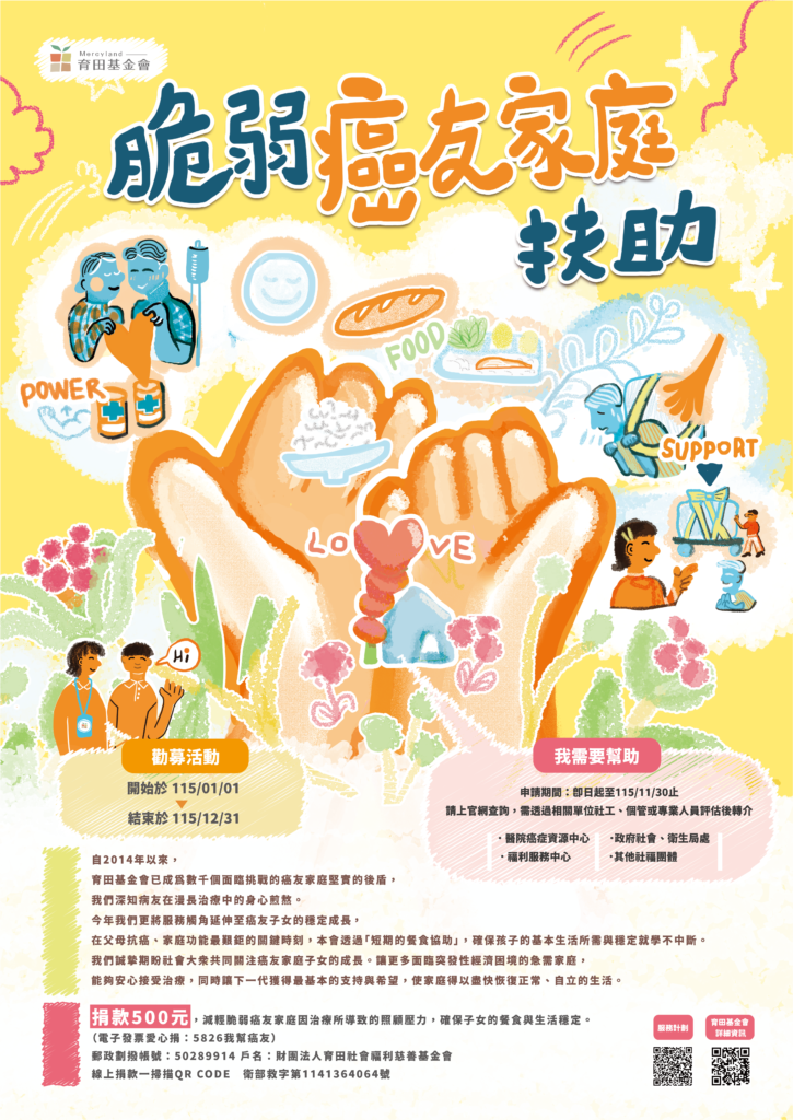 【公告】115 年度「脆弱癌友家庭扶助計畫」申請辦法